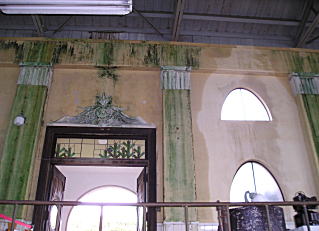 鉄筋コンクリートモルタル仕上げの建物(分離派建築)は、アールデコ様式のデザインが随所に見られます。黒々とした重量級ポンプだけが置かれた床なの、幾何学模様の綺麗なタイルが貼られています。この空間に居るだけで、当時の「水道」への厚い期待と喜びが伝わってきます。浜松市の貴重な文化財として保存の道を見つけたいものです。