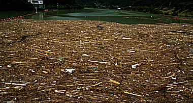 | 秋葉ダム堤体に漂着したごみ |