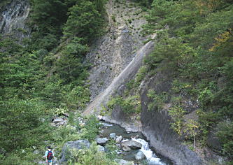 また、この道は日本列島の真ん中を南北に走る大断層・中央構造線に沿って走っている。地層や地質を観察しながら辿るには、もきわめて興味深いジオサイトでもある。 |